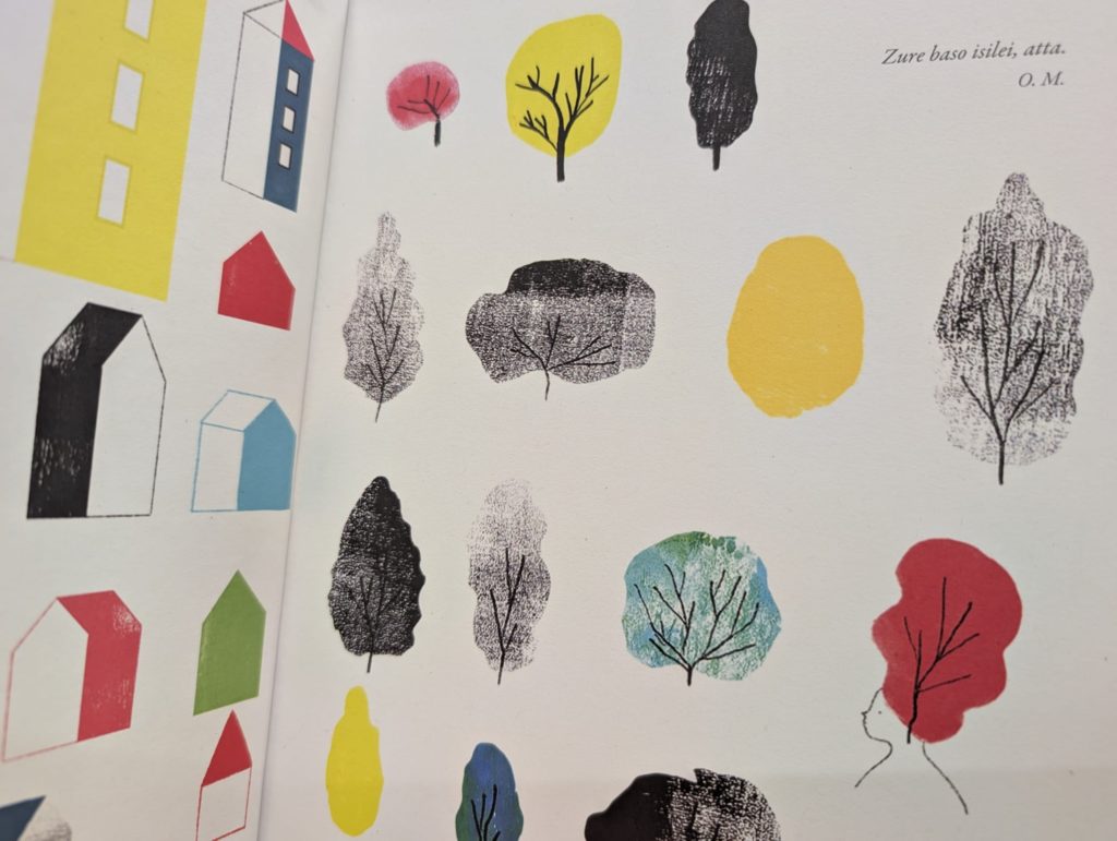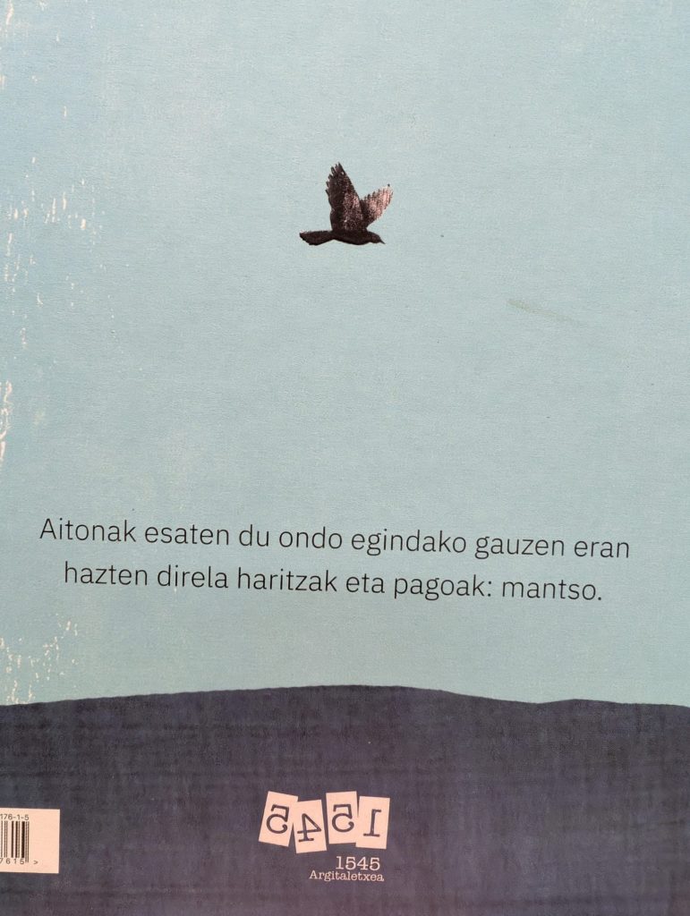Su txikian albumak bi belaunaldiren, eta, beraz, bi ikuspegiren arteko talka kontatzen du. Aitona Martinek haritza eta pagoa landatu ditu baserri inguruan, pinua kenduta. Ez du ikusiko berak harizti eta pagadi handirik, badaki, baina zaindu egiten du hala ere: sasia jo, abereengandik babestu. Basoari harena dena itzuli nahi dio: haritzak, pagoak eta okilak.